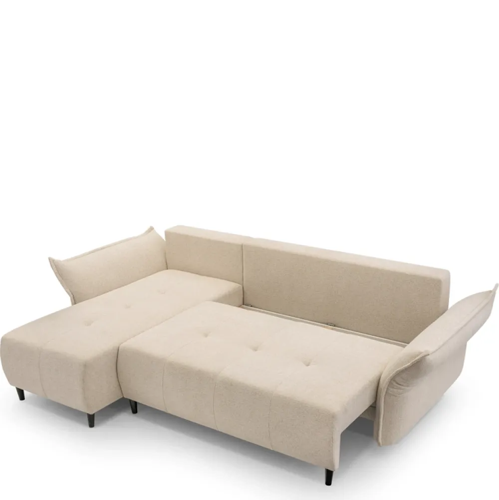Dodatkowo kanapa narożna wyposażona jest w praktyczny pojemnik na pościel, umożliwiający przechowywanie prześcieradeł i kołder, nie zajmując przy tym miejsca w szafie.