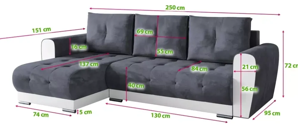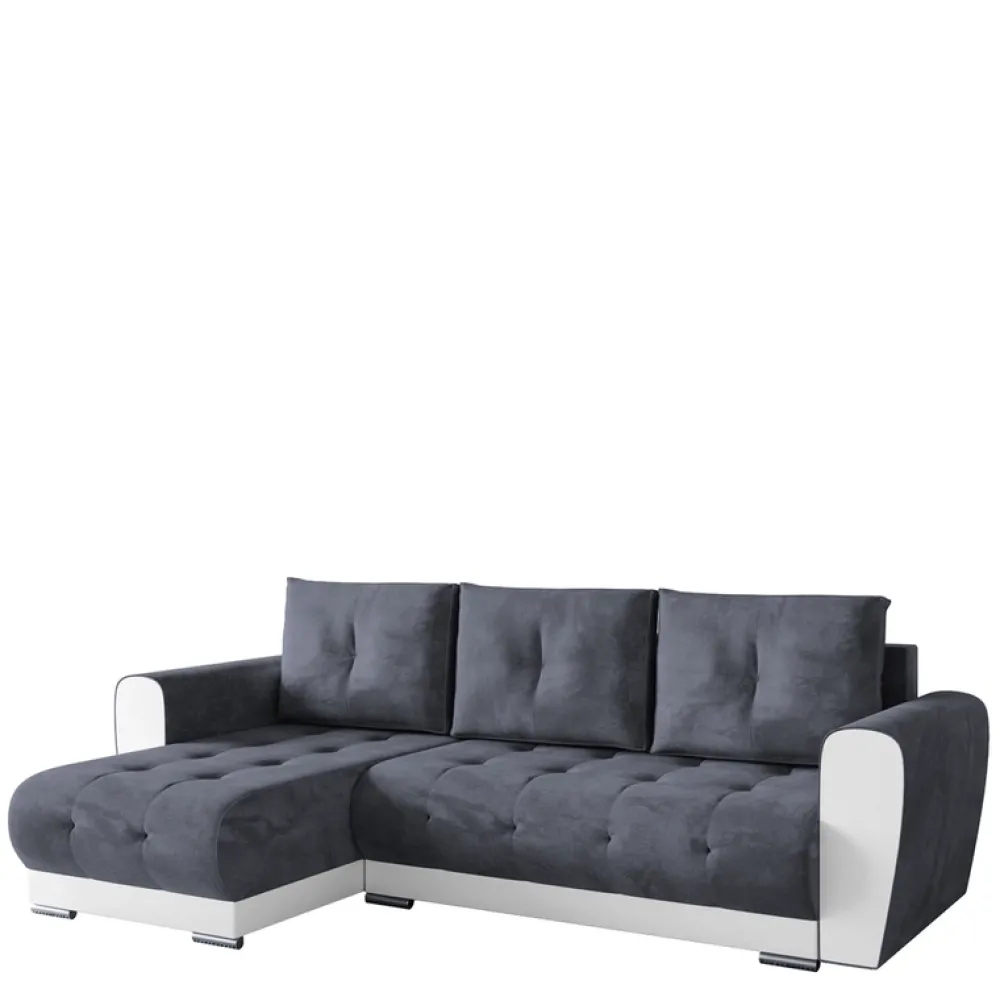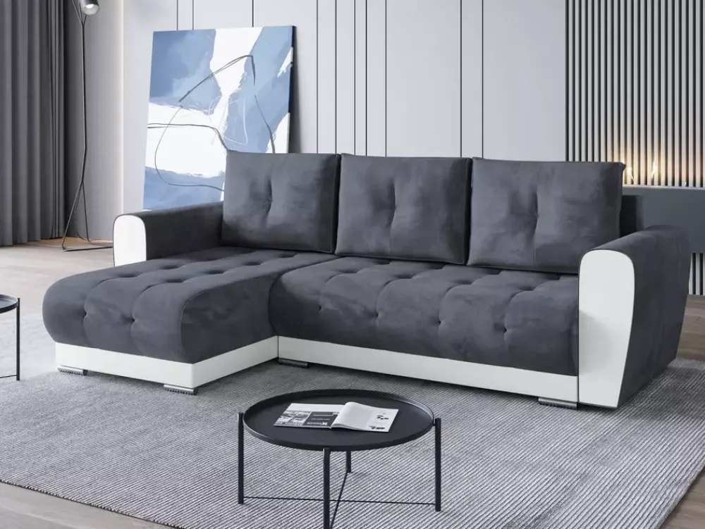 Jego atutem jest nie tylko przepiękna szara kolorystyka, dodająca wnętrzom niezwykłego charakteru i spokoju, ale przede wszystkim funkcje, które sprawiają, że ten narożnik to idealny mebel dla osób ceniących komfort i porządek. Pod siedziskiem kryje się pojemnik na pościel, gwarantujący dodatkowe miejsce do przechowywania, a funkcja spania umożliwia szybkie i łatwe przekształcenie go w pełnowymiarowe łóżko – idealne dla niespodziewanych gości.