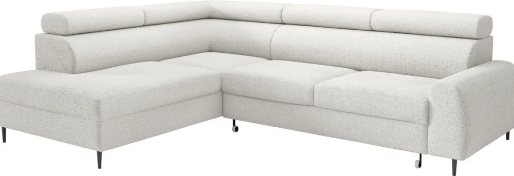 - Ten nowoczesny narożnik został wyposażony w pełni regulowane zagłówki, które mogą Państwo ustawić według swoich preferencji.