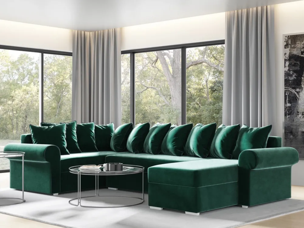 Podsumowując, ten narożnik w kształcie U to połączenie elegancji, funkcjonalności i komfortu, idealne dla każdego, kto szuka mebla, który sprosta wymaganiom codziennego użytkowania, zapewniając jednocześnie przytulną atmosferę i styl w salonie.
