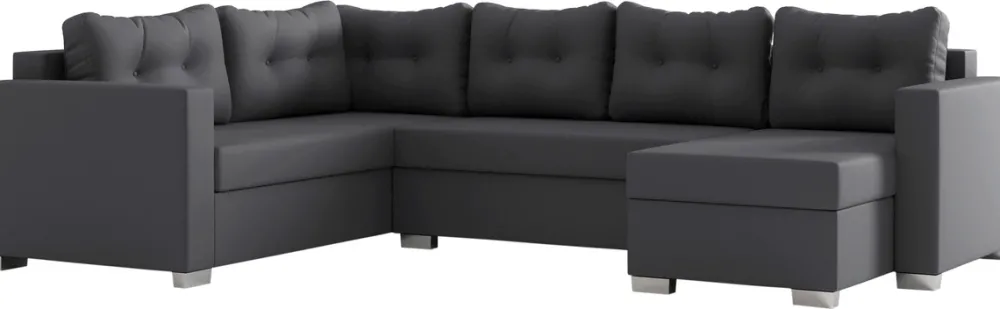 Narożnik z funkcją spania MAESTRO to idealne rozwiązanie dla tych, którzy szukają funkcjonalności i wygody w jednym. Ten duży narożnik w kształcie litery U, tapicerowany w całości tą samą tkaniną, pozwala na dowolne ustawienie w salonie, bez utraty estetyki. Dzięki temu świetnie prezentuje się nie tylko przy ścianie, ale także na środku salonu, stając się jego centralnym punktem.