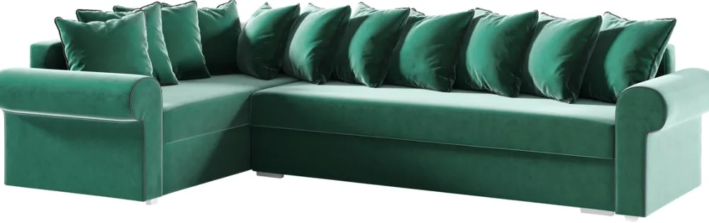 Państwu oferujemy szeroki wybór tkanin, pozwalając na idealne dopasowanie do każdego wnętrza. Prezentowany model został obity tkaniną Kronos 19 w modnym, butelkowo zielonym kolorze, który doda charakteru i stylu każdemu pomieszczeniu. Pluszowa faktura tkaniny zapewnia nie tylko wizualną głębię, ale także niezwykłą miękkość w dotyku, co czyni każdy moment spędzony na narożniku wyjątkowo przyjemnym.