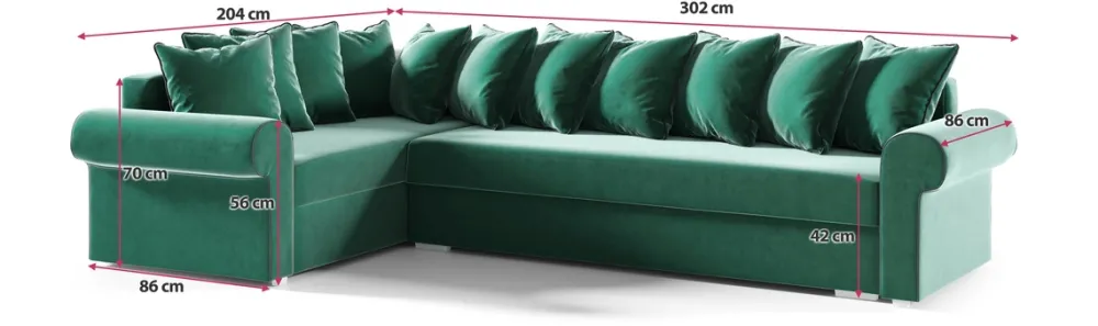 - Narożnik posiada głęboki pojemnik na pościel, umożliwiając Państwu przechowanie poduszek, koców oraz rozmaitych akcesoriów.