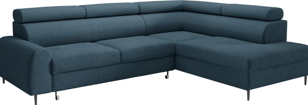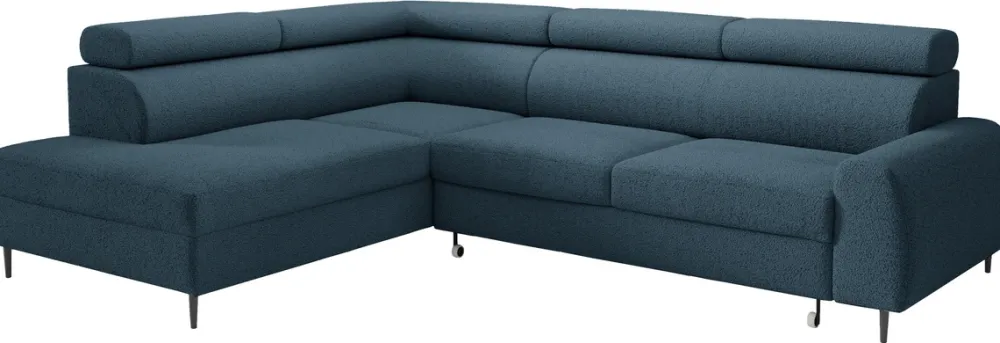 - Ten nowoczesny narożnik został wyposażony w pełni regulowane zagłówki, które mogą Państwo ustawić według swoich preferencji.