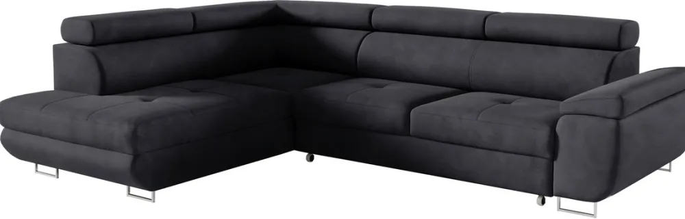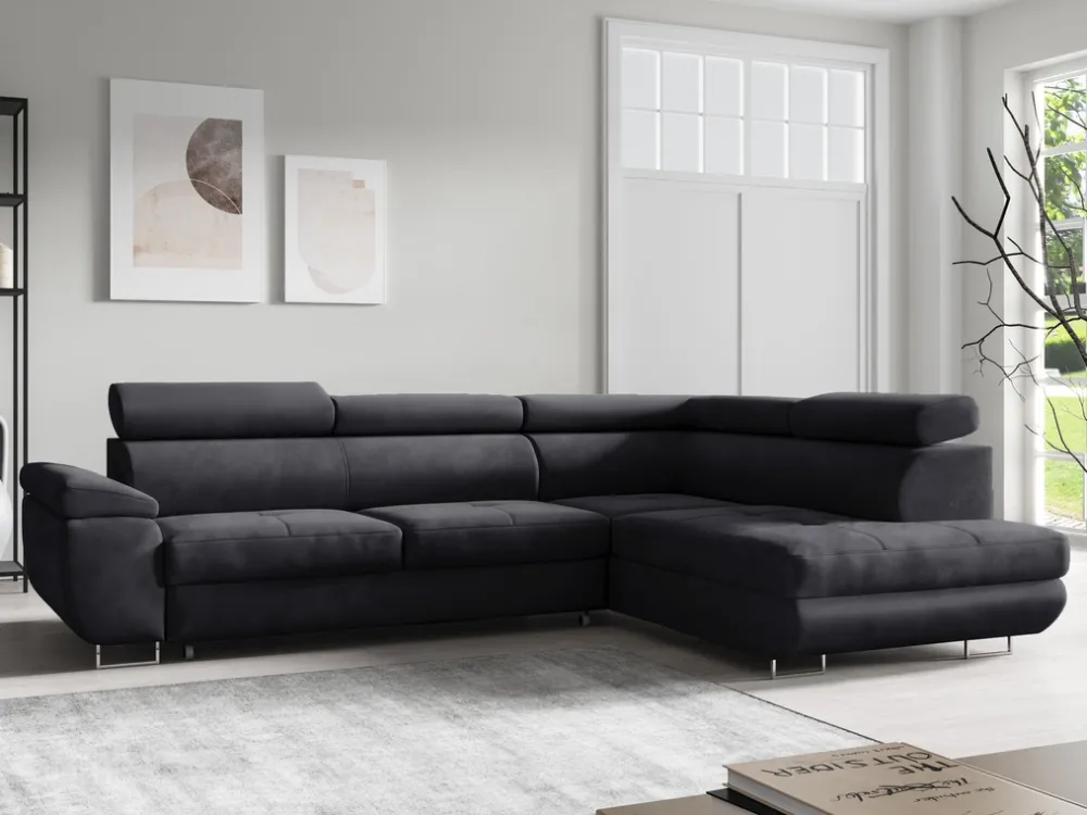 Idealny do nowoczesnych salonów, nasz rozkładany narożnik LISA łączy w sobie elegancję, funkcjonalność oraz wyjątkowy komfort użytkowania. Starannie wykonany z najwyższej jakości materiałów, takich jak płyta wiórowa, MDF i drewno sosnowe, zapewnia trwałość i stabilność na lata. Dodatkowo metalowe nóżki dodają całości nowoczesnego charakteru, jednocześnie gwarantując wysoką wytrzymałość.