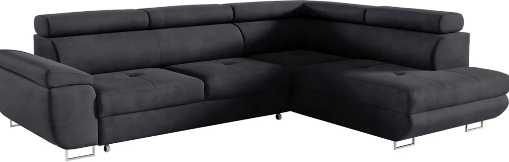 - Metalowe nóżki dodają elegancji oraz nowoczesnego wyglądu, zapewniając stabilność i trwałość całej konstrukcji. Metalowe nóżki nie tylko podnoszą estetykę narożnika, ale także ułatwiają utrzymanie czystości pod meblem, oferując praktyczne rozwiązanie w codziennym użytkowaniu.