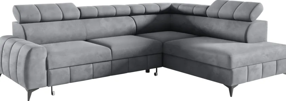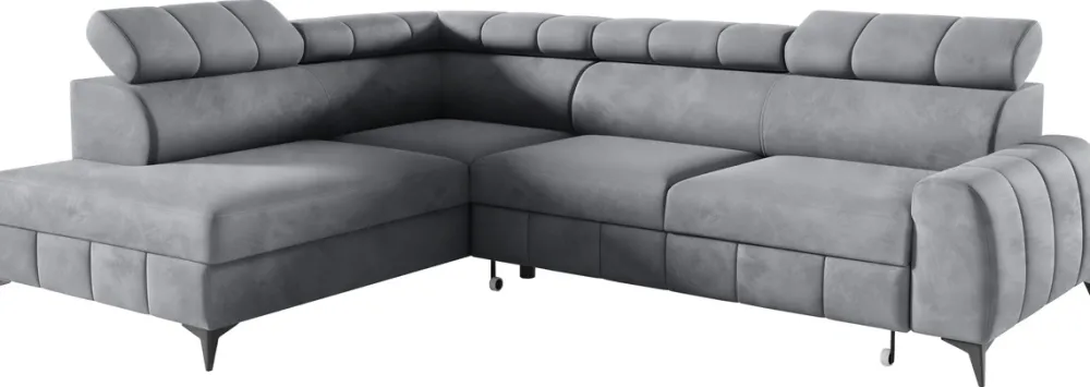 - Metalowe nóżki dodają elegancji oraz nowoczesnego wyglądu, zapewniając stabilność i trwałość całej konstrukcji. Metalowe nóżki nie tylko podnoszą estetykę narożnika, ale także ułatwiają utrzymanie czystości pod meblem, oferując praktyczne rozwiązanie w codziennym użytkowaniu.