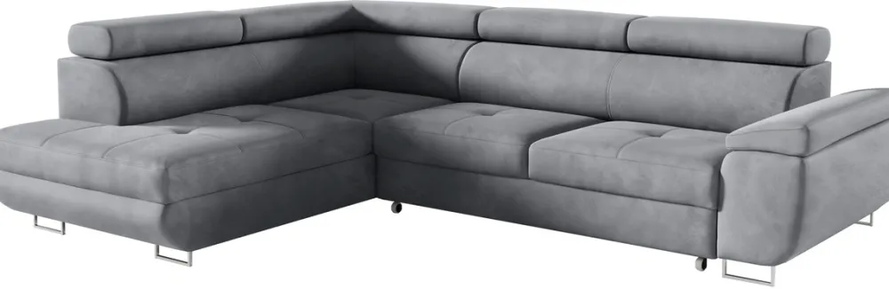 - Metalowe nóżki dodają elegancji oraz nowoczesnego wyglądu, zapewniając stabilność i trwałość całej konstrukcji. Metalowe nóżki nie tylko podnoszą estetykę narożnika, ale także ułatwiają utrzymanie czystości pod meblem, oferując praktyczne rozwiązanie w codziennym użytkowaniu.