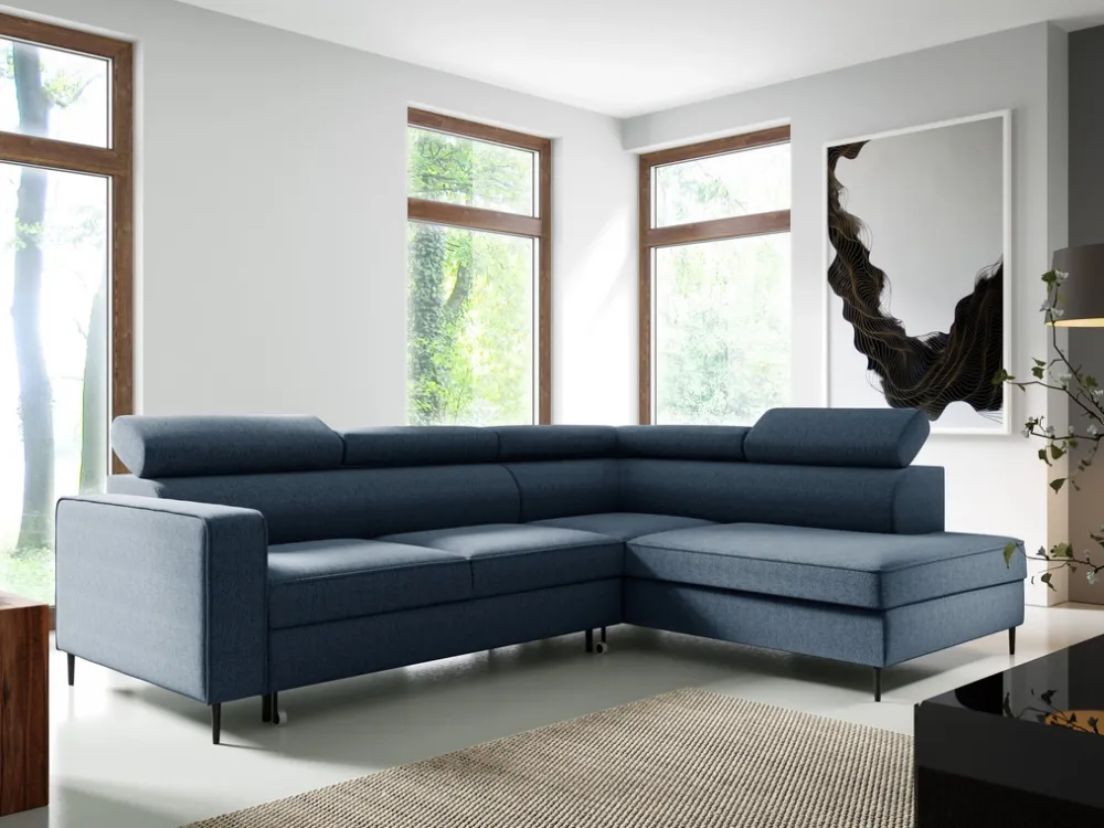 - Ten nowoczesny narożnik został wyposażony w pełni regulowane zagłówki, które mogą Państwo ustawić według swoich preferencji.