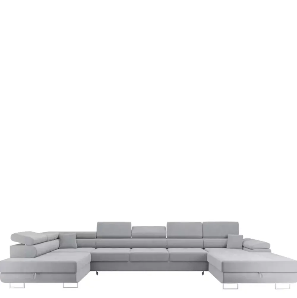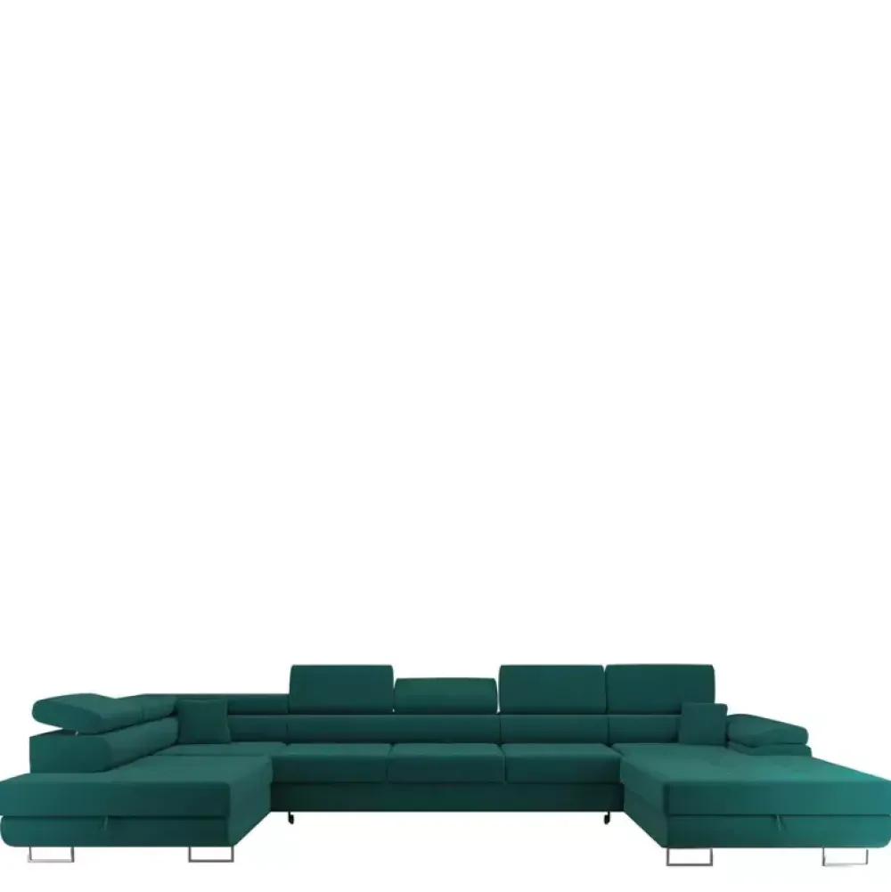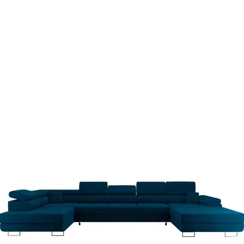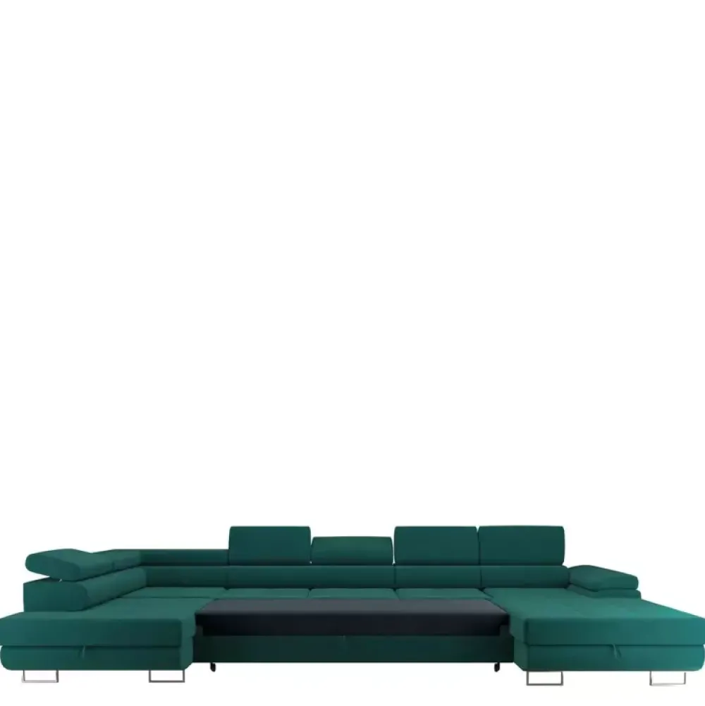 - Narożnik U o szerokości całkowitej aż 400 cm. Trwała konstrukcja z litego drewna, cztery regulowane zagłówki, pełnowymiarowa funkcja spania, obszerny pojemnik na pościel, a to wszystko dostępne w tkaninach z najpopularniejszych kolekcji.