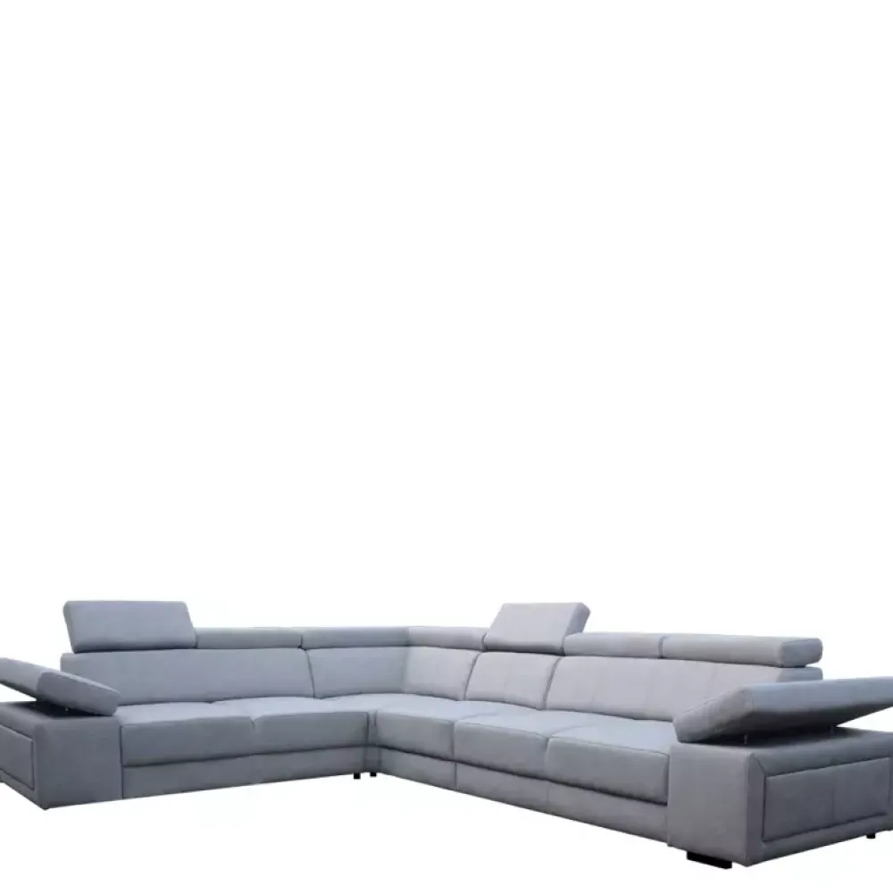 - Wypoczynkowa kanapa narożna do salonu. Konstrukcja w pełni nastawiona na relaks. Pięć zagłówków z czterostopniową regulacją pozycji, dwa regulowane podłokietniki. Miejsce idealne do relaksu czy wieczornych kinowych seansów.