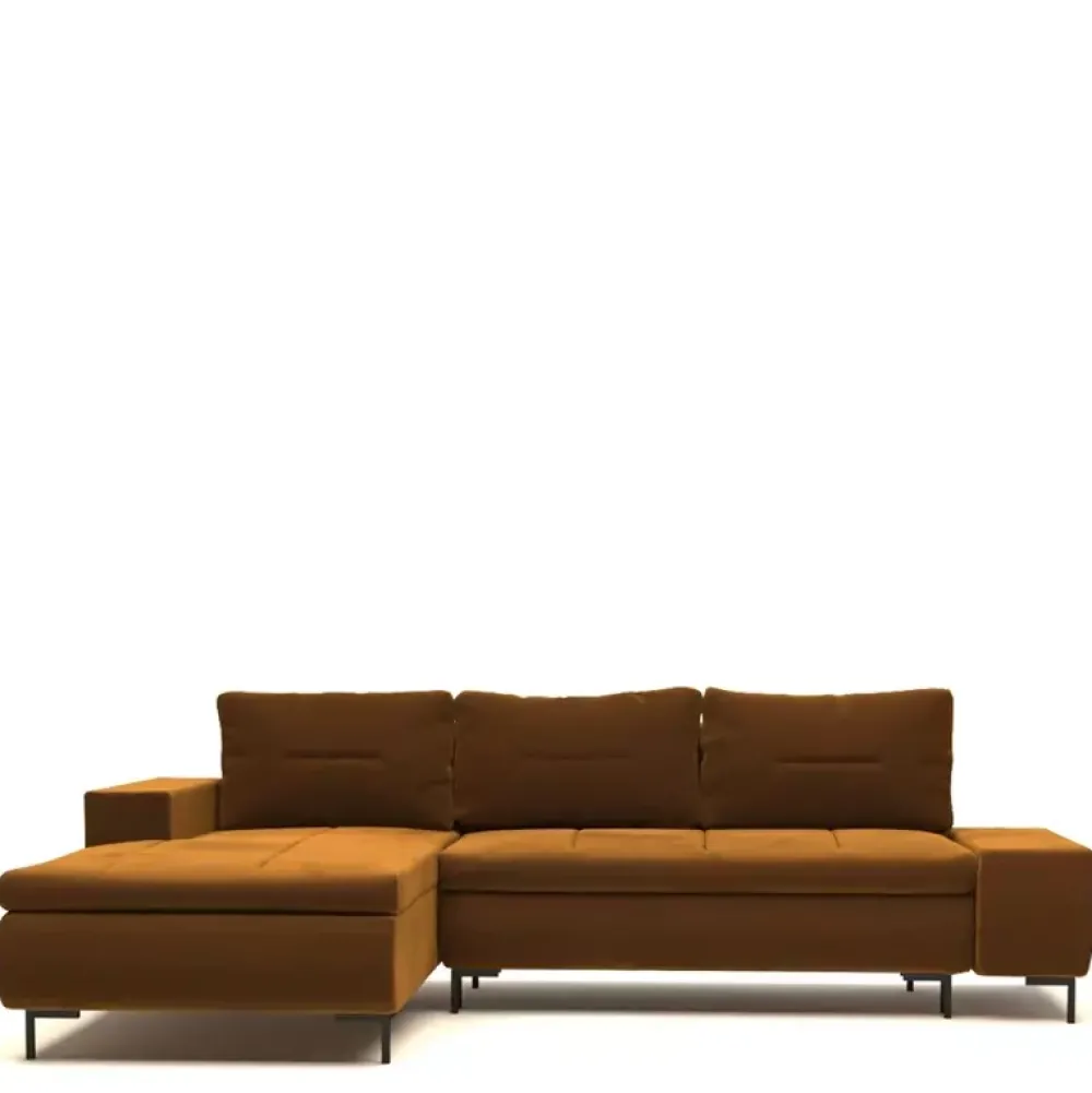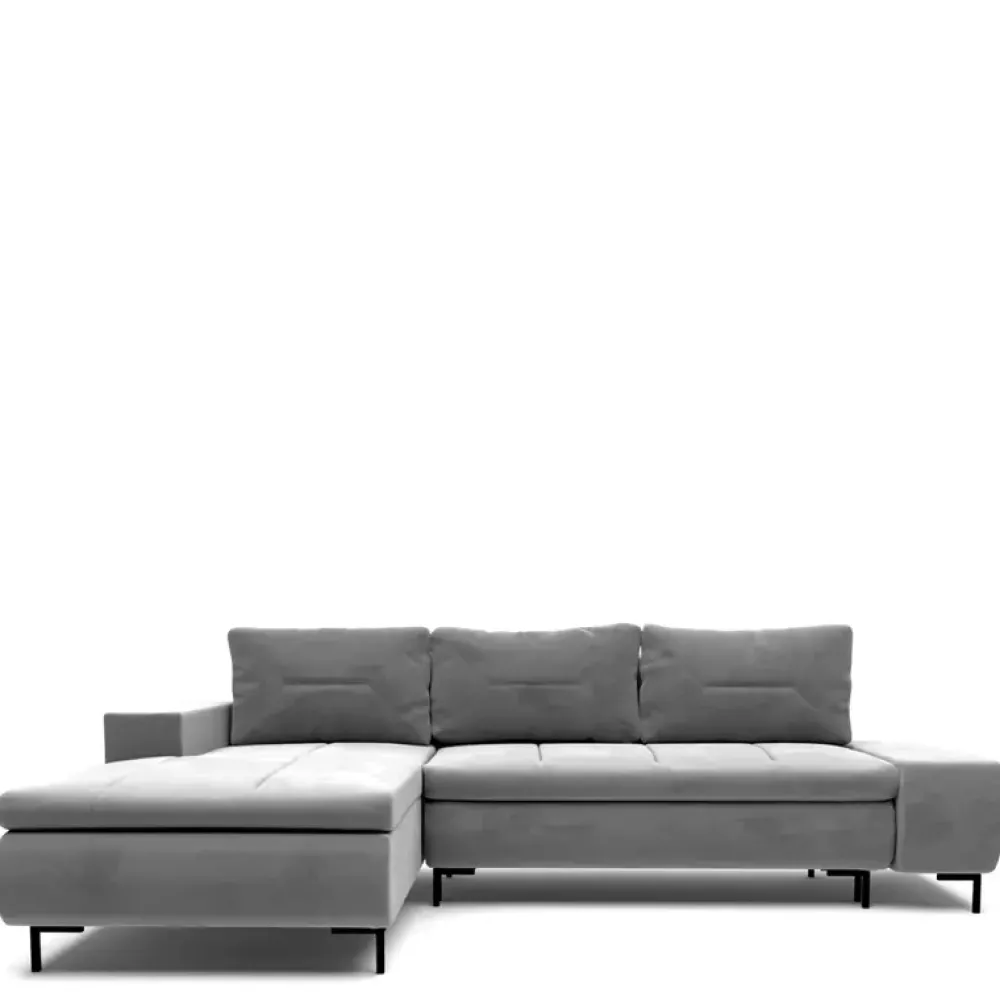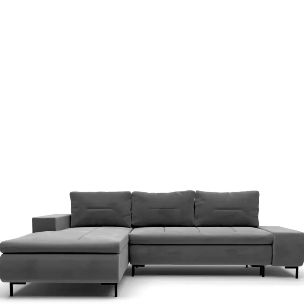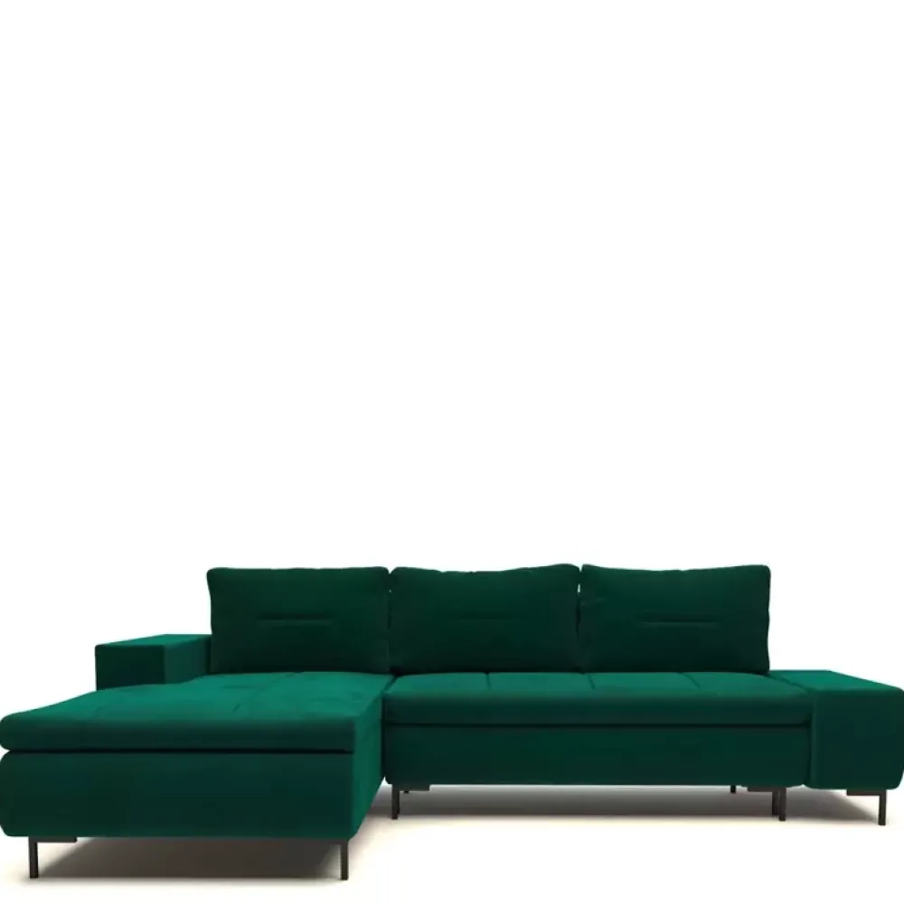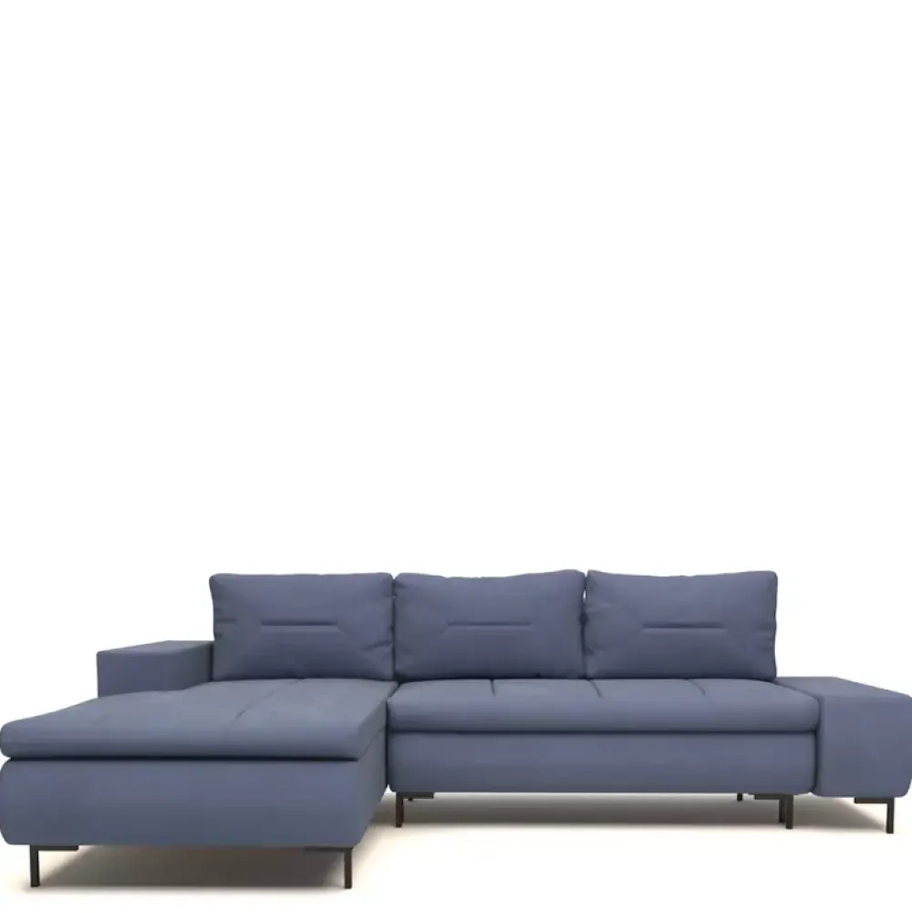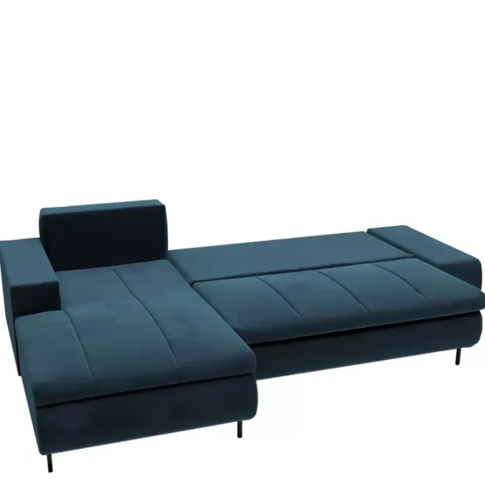 - Kanapa narożna wyposażona w funkcjonalny pojemnik na pościel.