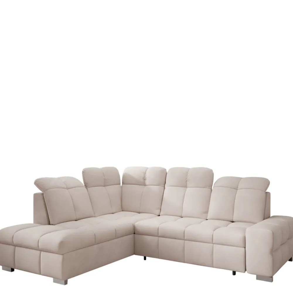 Dla tych, którzy cenią sobie indywidualne ustawienia i komfort w każdej pozycji, narożnik do salonu posiada pięć regulowanych zagłówków, które bezproblemu dopasujesz się do swoich preferencji. Gwarantują one pełne wsparcie i komfort podczas odpoczynku.