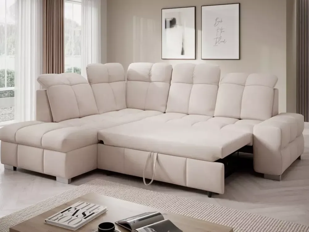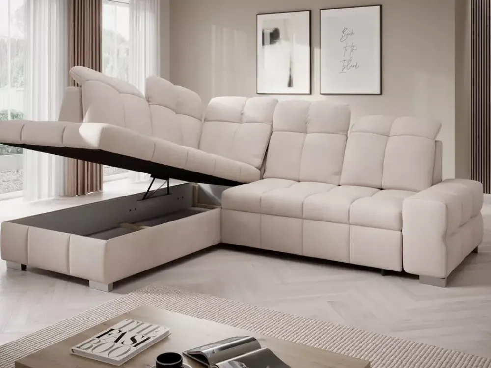 Funkcja spania okaże się przydatna jeśli goście często odwiedzają Twój dom, lub po prostu gdy planujesz rodzinny maraton filmowy. A wbudowany pojemnik na pościel pomoże oszczędzić miejsce w szafach czy komodach.