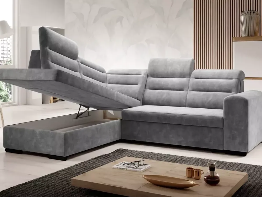 Jednym z największych atutów naszego narożnika jest jego funkcjonalność. Przemyślane detale, takie jak pojemnik na pościel, umożliwiają łatwe przechowywanie dodatkowej pościeli lub poduszek, co jest niezwykle przydatne zwłaszcza w mniejszych pomieszczeniach.