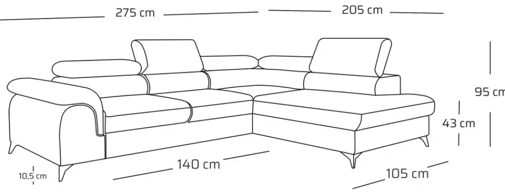 Komfort to nie tylko miękkie siedzisko, ale też możliwość personalizacji. Pięć regulowanych zagłówków pozwoli Ci dostosować narożnik do Twoich indywidualnych potrzeb. Czy to czytanie ulubionej książki, maraton filmowy czy po prostu drzemka, z narożnikiem zawsze znajdziesz idealną pozycję.