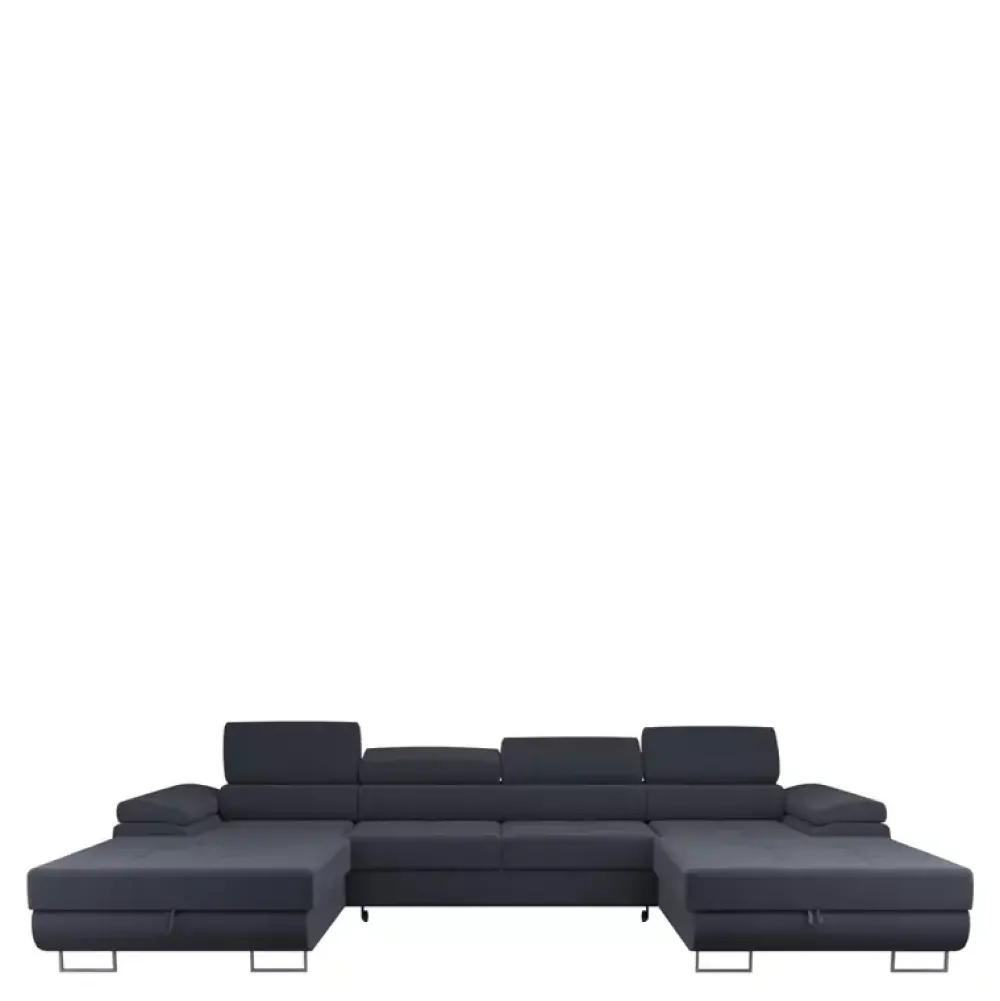- Narożnik w kształcie U z obszerną funkcją spania o powierzchni 125×280 cm. Wyposażony w dwa obszerne pojemniki na pościel, cztery regulowane zagłówki. Dostępny jest w najpopularniejszych tkaninach w modnych odcieniach.