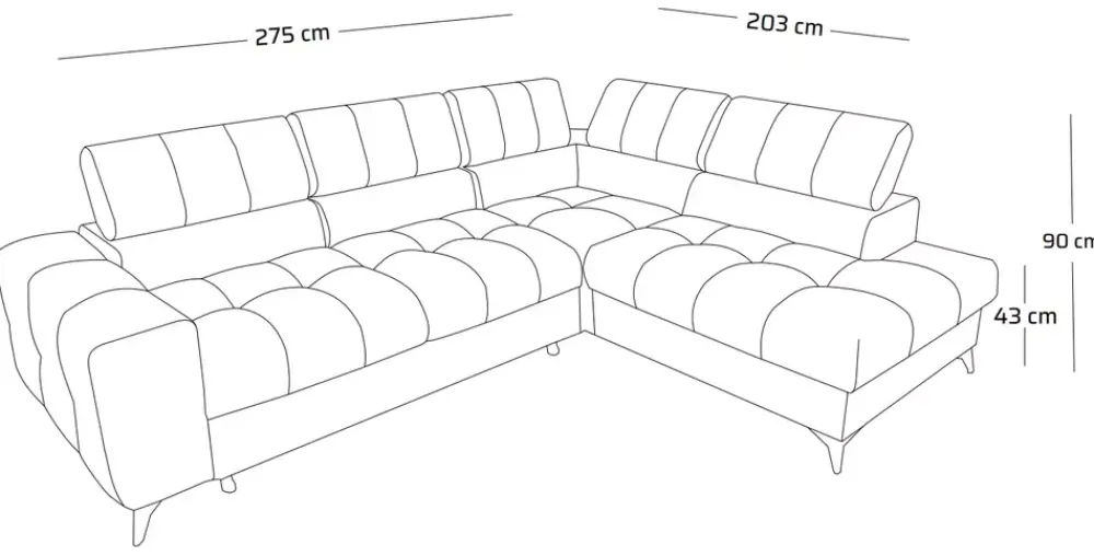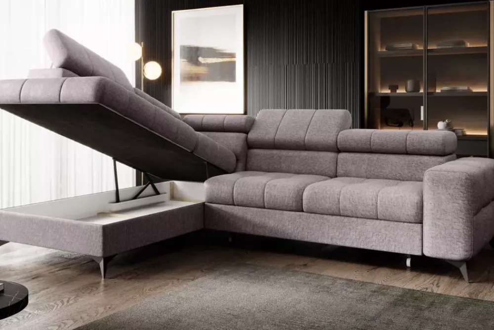 Jeśli często odwiedzają Cię goście, w razie potrzeby z łatwością zmienisz narożnik w wygodne miejsce do spania przy pomocy prostego w obsłudze mechanizmu rozkładania typu Delfin, a praktyczny pojemnik na pościel, pomoże Ci zaoszczędzić miejsce w szafie czy komodzie.