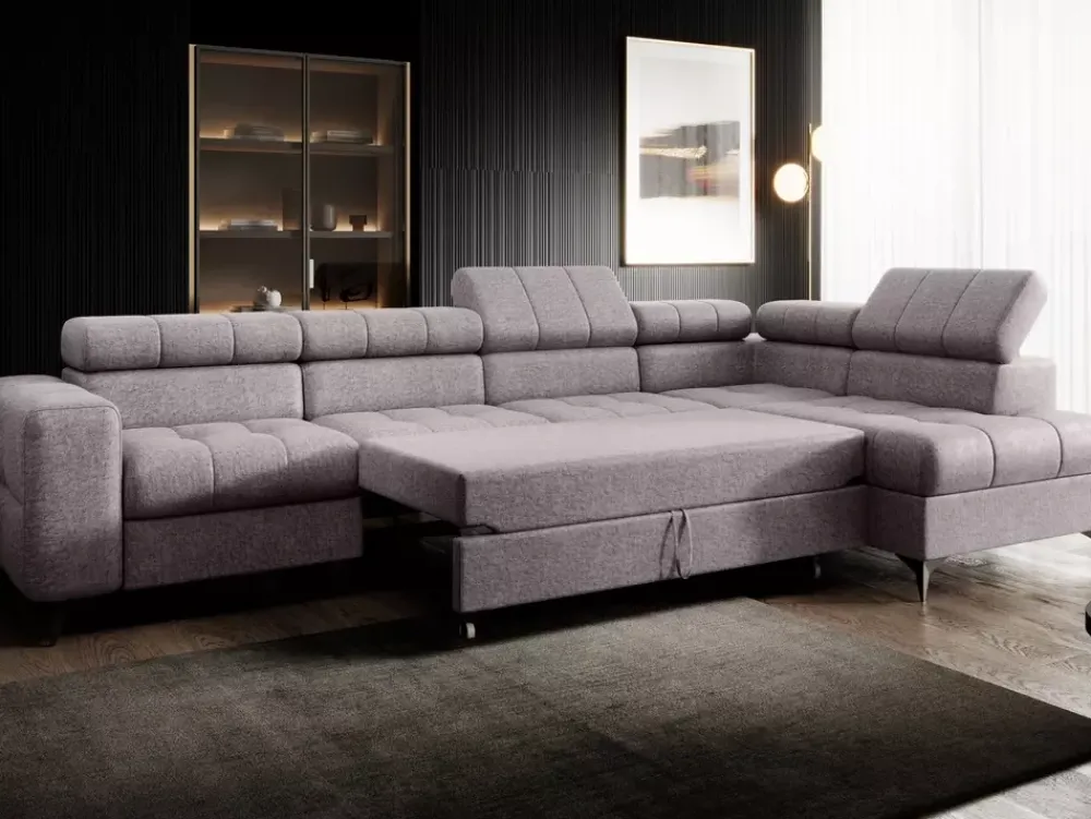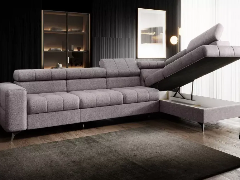 Jeśli często odwiedzają Cię goście, w razie potrzeby z łatwością zmienisz narożnik w wygodne miejsce do spania przy pomocy prostego w obsłudze mechanizmu rozkładania typu Delfin, a praktyczny pojemnik na pościel, pomoże Ci zaoszczędzić miejsce w szafie czy komodzie.