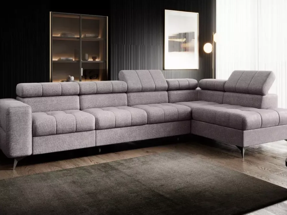 - Zobacz, jak komfort idzie w parze z nowoczesnym designem w kanapie rogowej POLA. Metalowe nóżki z ozdobnym szyciem dodają charakteru, a regulowane zagłówki z oparciem oraz siedziskiem z pianki HR gwarantują komfort i wygodę podczas odpoczynku.