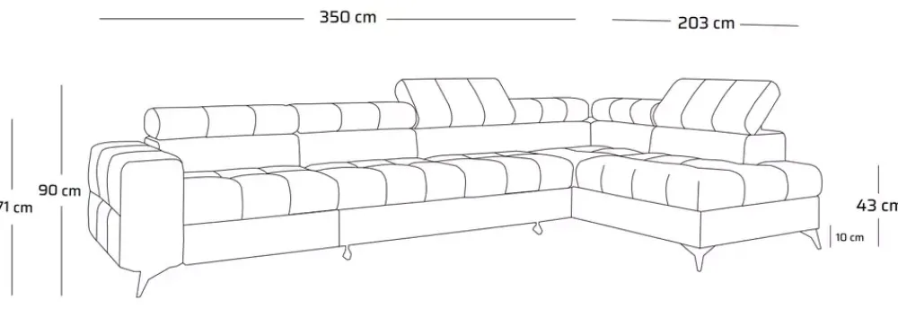 To, co gwarantuje, że chwile spędzone na narożniku będą przyjemne a odpoczynek komfortowy, to sześć regulowanych zagłówków, dzięki którym każdy znajdzie dla siebie idealną pozycję. Czy to podczas seansu filmowego, czy leniwego popołudnia z książką, możesz liczyć na niezrównany komfort i wsparcie dla swojego ciała. Dodatkowo siedzisko oraz oparcie wykonane z pianki wysokoelastycznej HR o grubości aż 11 cm, gwarantuje trwałość i odporność na odkształcenia.