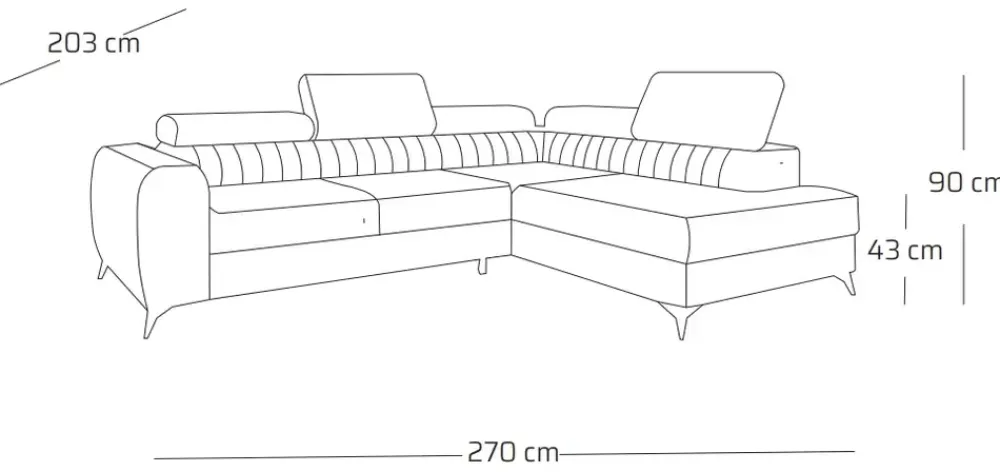 Mechanizm rozkładania Delfin umożliwia błyskawiczną zmianę kanapy rogowej w dodatkowe miejsce do spania, co z pewnością przyda się podczas niespodziewanych wizyt. Nie zapomnieliśmy także o przechowywaniu pościel, wbudowany pojemnik załatwia tę sprawę raz na zawsze, co sprawi, że nie musisz szukać dodatkowego miejsca na przechowywanie Twoich tekstyliów, kołder czy poduszek.