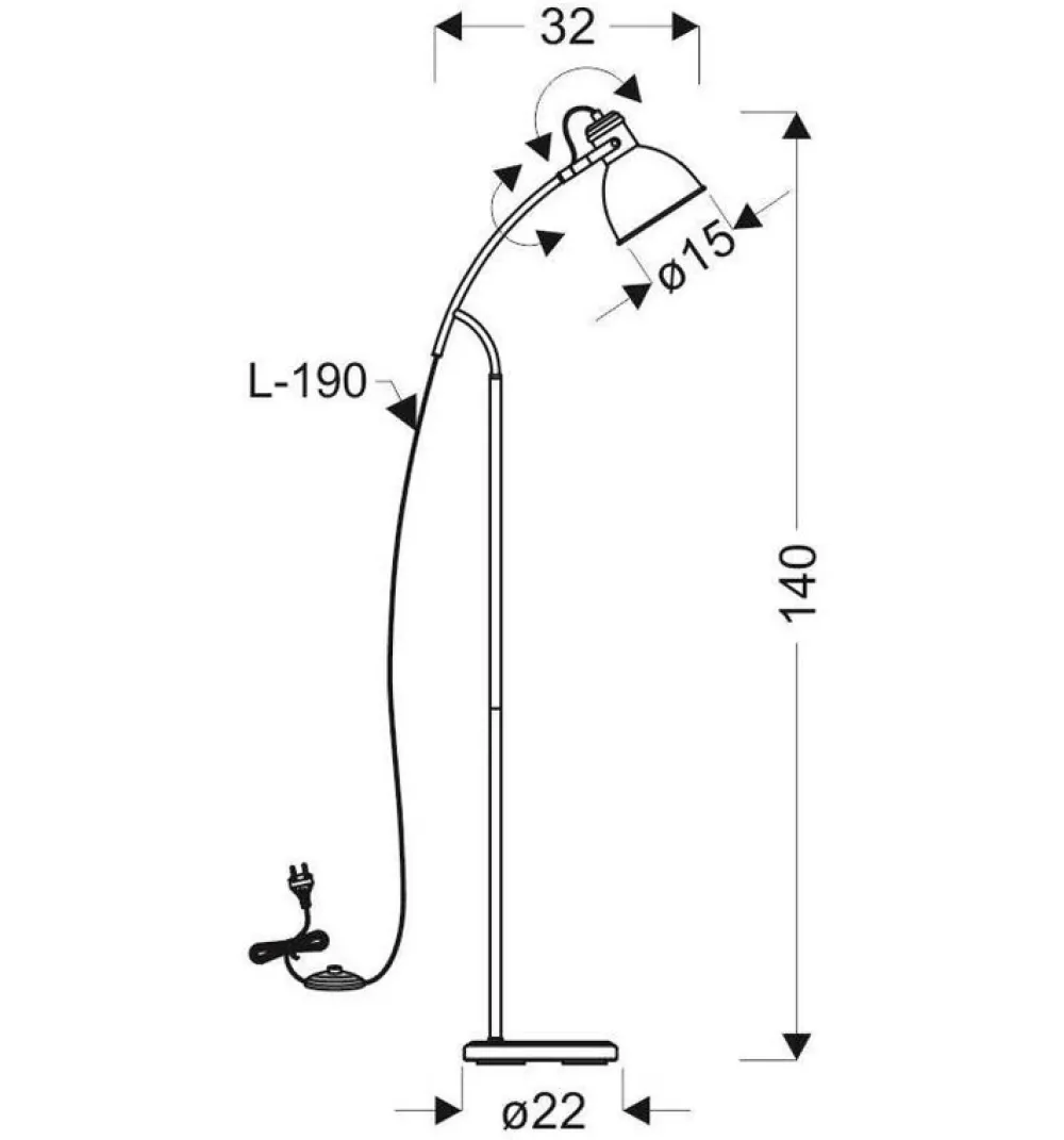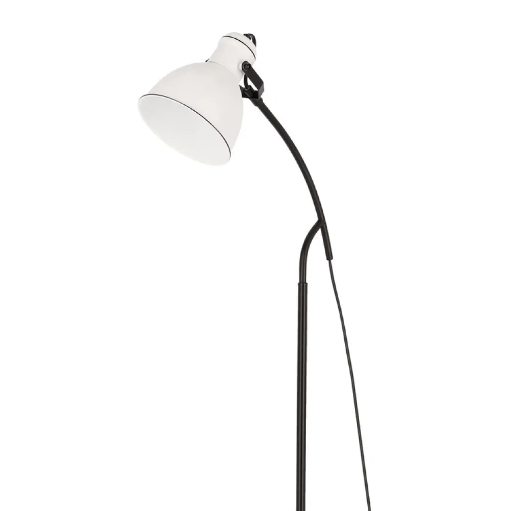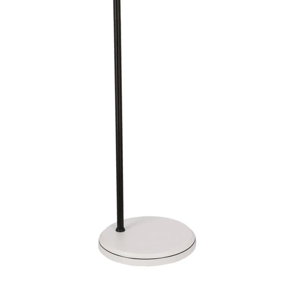 Lampa ma wysokość 140cm. Zasilana jest jedną żarówką o trzonku E27. Wyposażona jest w czarny kabel o długości 190cm z przełącznikiem. Wykończenie lampy w kolorze czarnym i białym pasuje do każdego współczesnego wnętrza.