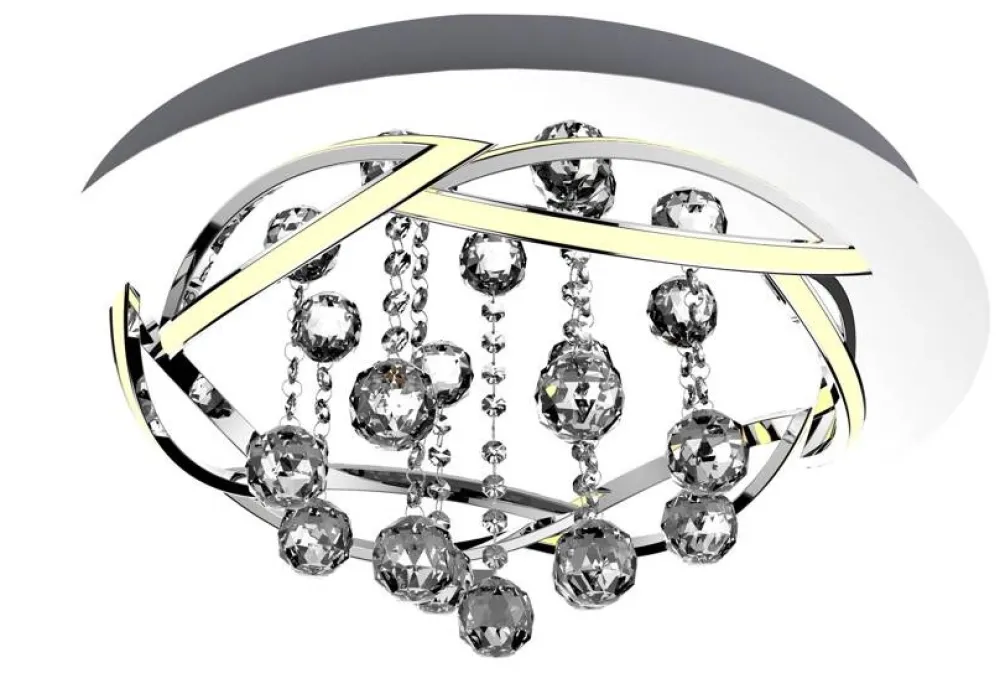 - Nowoczesna Lampa sufitowa, łącząca chrom, awangardowy kryształ i ekonomiczny led. Ledy tworzą koronę i okalają zawieszone na lampie kryształy. Lampa nada pomieszczeniu eleganckiego i wyszukanego designu.