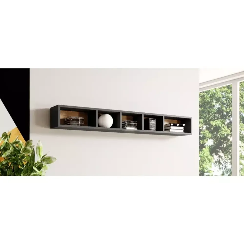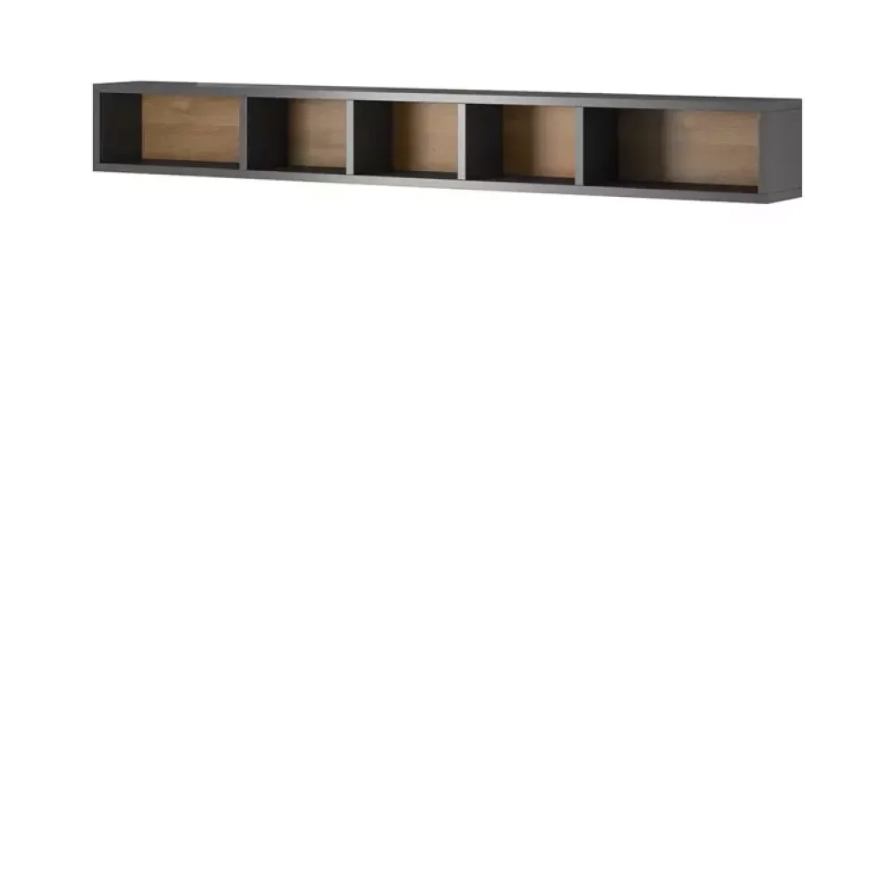 Nowoczesna półka wisząca o szerokości 169 cm z pięcioma przegrodami.
