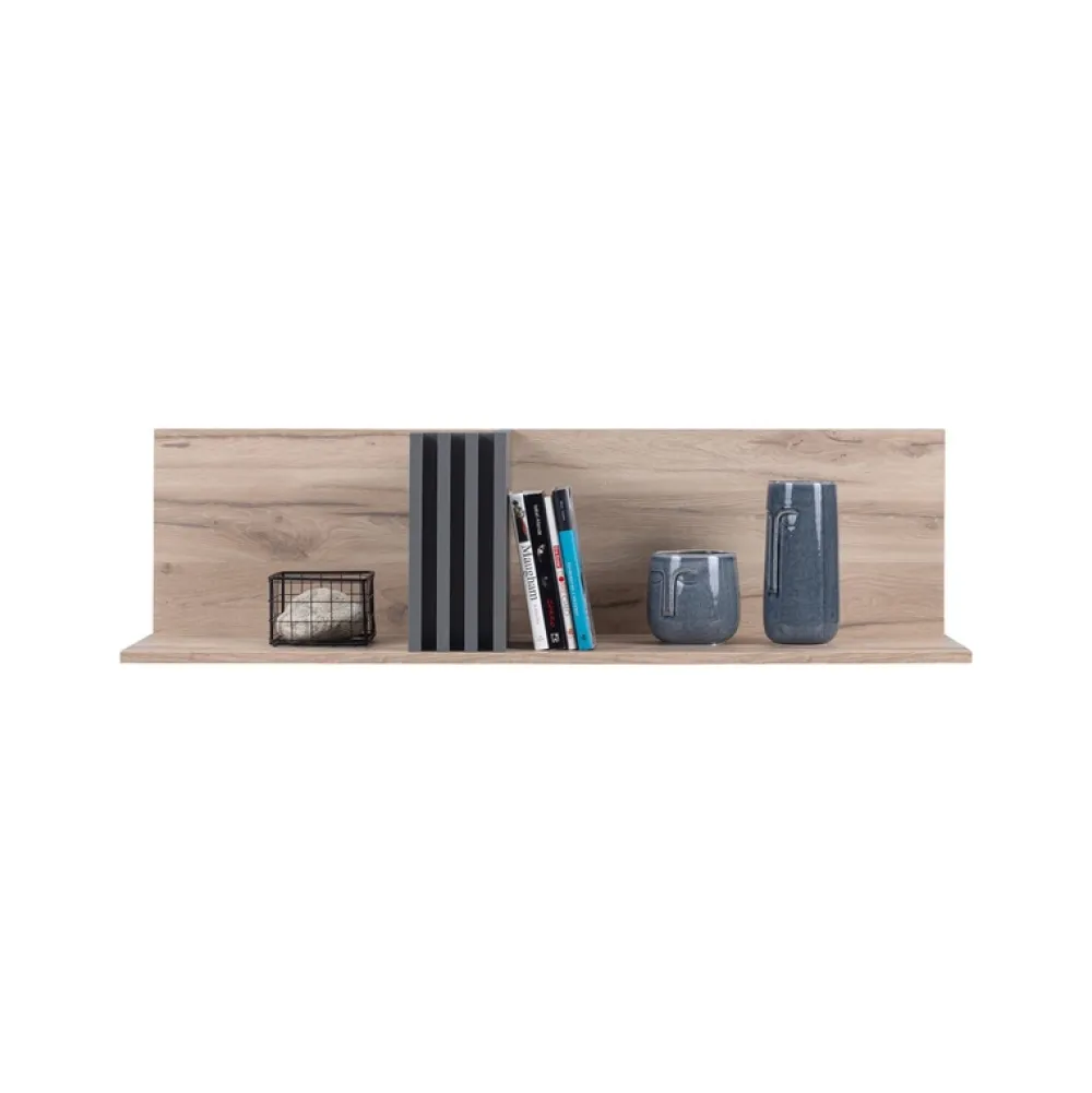 Elegancka i praktyczna, ta nowoczesna półka ścienna do salonu AGRA jest prawdziwym kwintesencją stylu i funkcjonalności. Wykonana z wysokiej jakości jasnego dębu estana, półka ta posiada ponadczasowe piękno, które z pewnością przyciągnie spojrzenia wszystkich, którzy odwiedzą Twój dom.