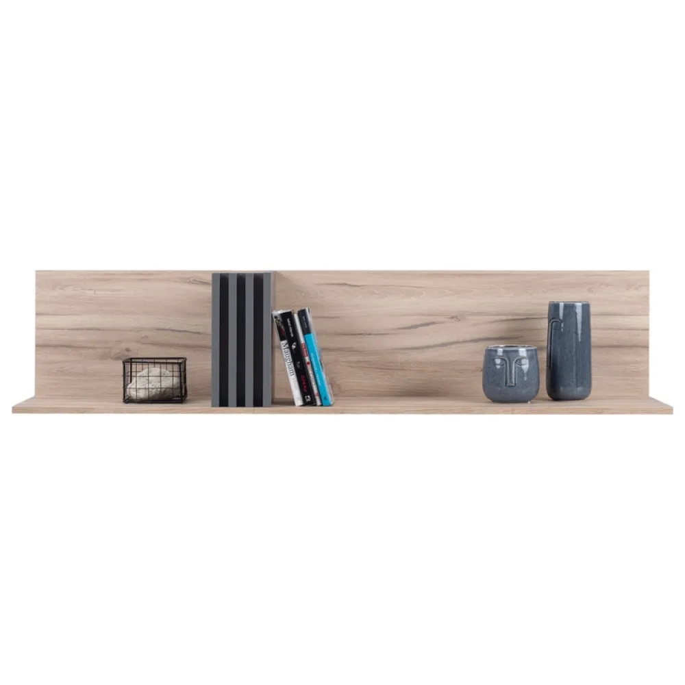 Ta nowoczesna, wisząca półka do salonu AGRA to kwintesencja elegancji i funkcjonalności, wpisująca się w najnowsze trendy wnętrzarskie. Subtelny odcień jasnego dębu estana daje niepowtarzalne piękno i ciepło, podkreślając naturalny urok drewna.