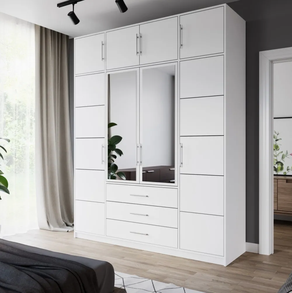 Idealna do przechowywania sezonowych ubrań, pościeli, walizek czy innych akcesoriów, nadstawka pozwala na utrzymanie porządku, bez zagracania dolnej części szafy. Jej funkcjonalny układ z czterema drzwiami zapewnia łatwy dostęp do każdej z komór, a jednocześnie daje możliwość ukrycia wszystkiego, co nie musi być na widoku.