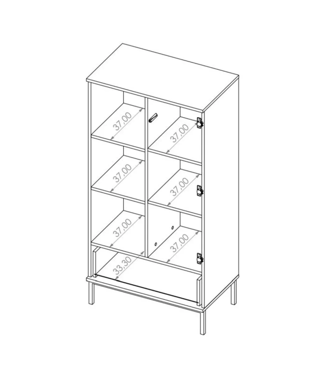 - Tył mebla wykonany z czarnej płyty HDF o grubości 3 mm.