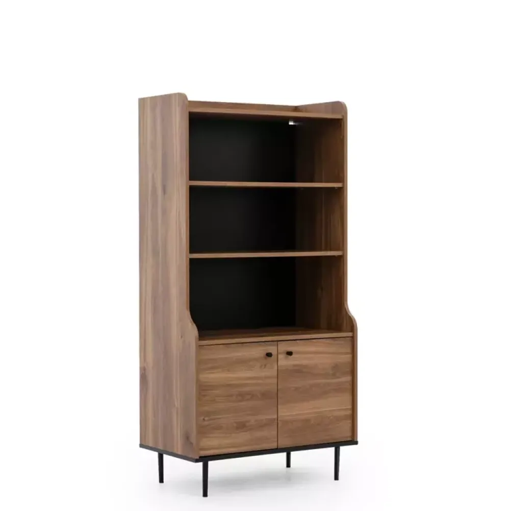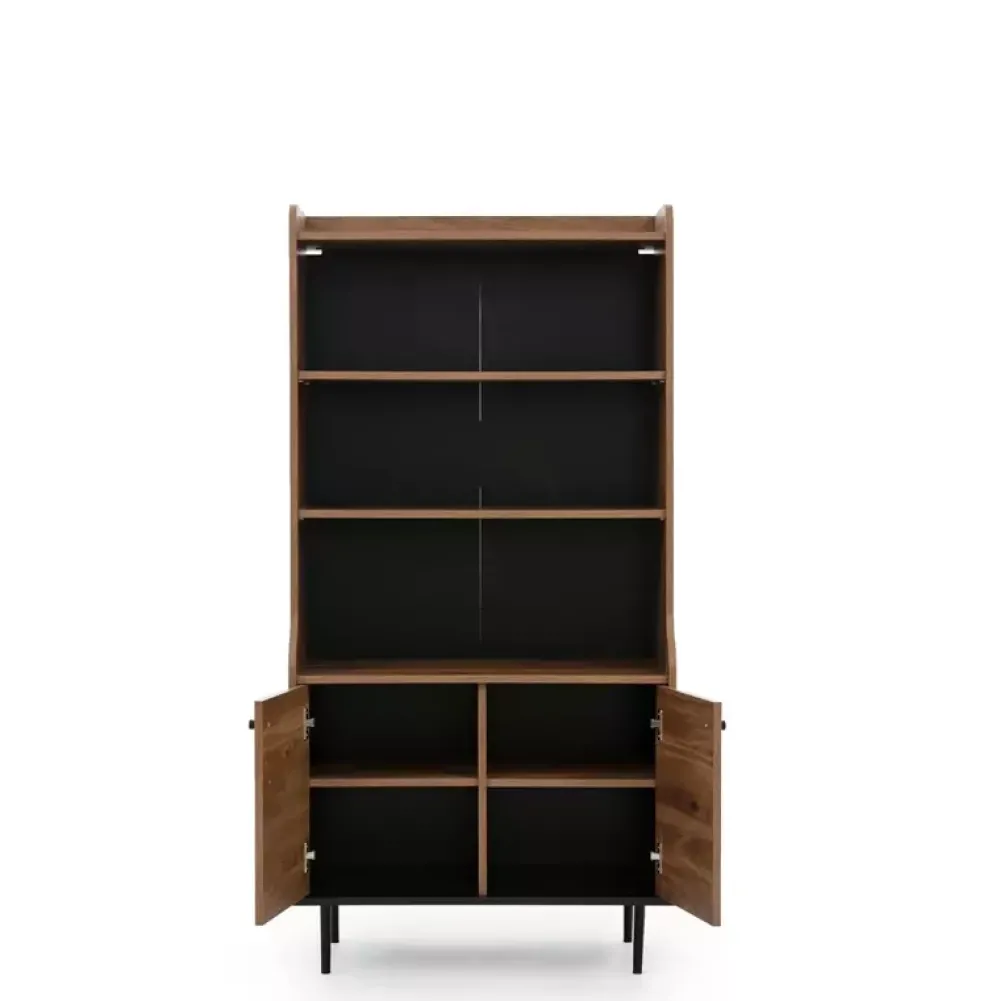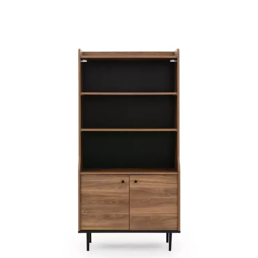 - Otwarty regał z zamykaną parą drzwi szafką na dole, sprawdzi się świetnie do ekspozycji ulubionej literatury lub rodzinnych pamiątek.