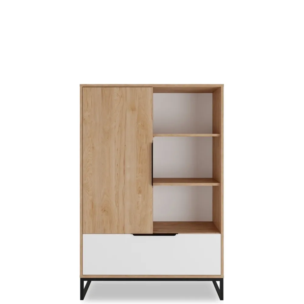 Wszystkie Twoje drobiazgi ukryjesz za drzwiami regału na praktycznej półce, natomiast na otwartych półkach wyeksponujesz różne dekory czy ozdoby. Organizuj, segreguj i przechowuj tak, jak chcesz.