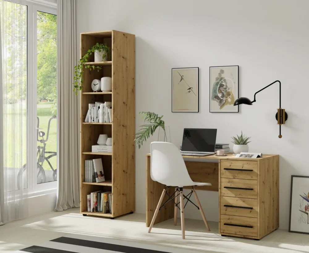 Regał MAXIDO to idealny wybór dla osób, które szukają funkcjonalnego, a zarazem estetycznego sposobu na przechowywanie książek, dokumentów lub dekoracji. Dzięki wysokiej konstrukcji i aż sześciu pojemnym półkom z łatwością zorganizujesz przestrzeń w domowym biurze, salonie czy pokoju młodzieżowym.