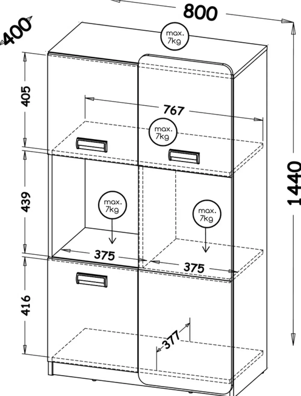 Mając wymiary 80 cm szerokości, 144 cm wysokości oraz 40 cm głębokości, regał ten idealnie wpasowuje się w potrzeby młodych użytkowników. Jego kompaktowe rozmiary pozwalają na umieszczenie go nawet w mniejszych pomieszczeniach, jednocześnie oferując znaczną ilość przestrzeni do przechowywania. Przemyślana konstrukcja z trzema półkami zapewnia wygodne rozmieszczenie książek, zabawek czy dekoracji.