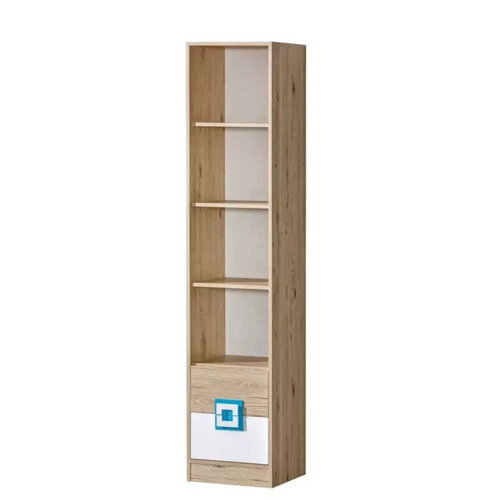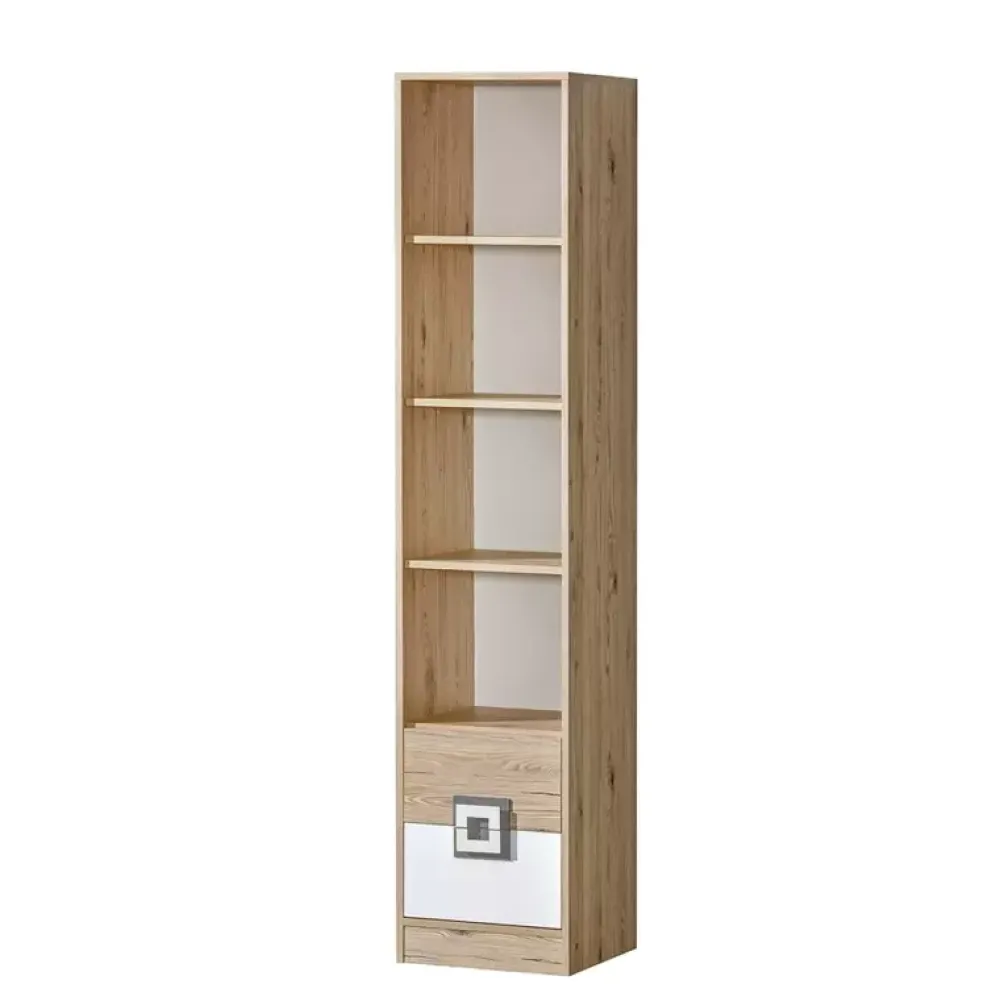 - Nowoczesny regał na książki z szufladami z kolekcji NICO. Regał stanowi idealne uzupełnienie kolekcji mebli. Został wyposażony we dwie szuflady oraz cztery poziomy, na których możesz umieścić swoje książki lub inne akcesoria.
