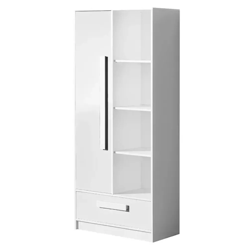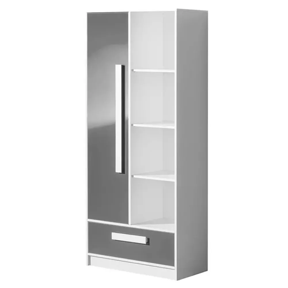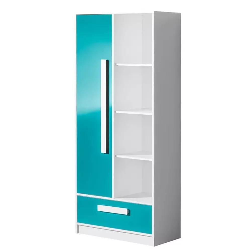 Regał dziecięcy z kolekcji mebli systemowych GULIVER z szufladą i sześcioma pólkami, gdzie trzy zostały zamknięte drzwiami, a trzy otwarte, na których możesz umiejscowić swoje dekory, kwiaty czy pamiątki. Regał dzięki wielu półkom idealnie nadaje się do przechowywania akcesoriów czy ubrań, dzięki szufladzie z pełnym wysuwem zyskasz prosty dostęp do twoich najpotrzebniejszych rzeczy.