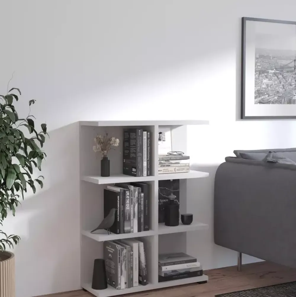 - Otwarty regał wyposażony w cztery półki zapewni Ci miejsce na ulubione książki, czasopisma, czy pamiątki z rodzinnych wakacji. Regał ma 83,2 cm szerokości i 112,5 cm wysokości.
