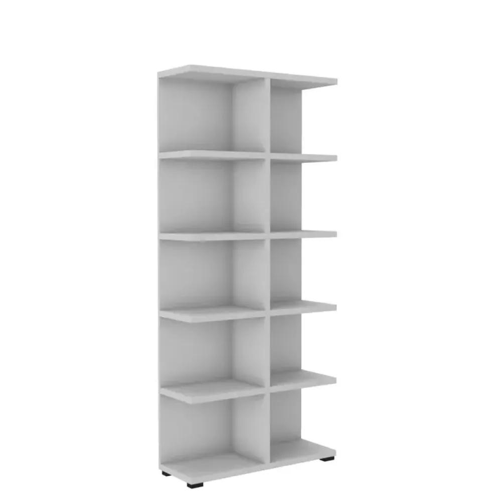 - Szary regał wyposażony w osiem półek zapewni Ci dużo miejsca na ulubione książki, czasopisma, czy pamiątki z rodzinnych wakacji. Regał ma 83,2 cm szerokości.