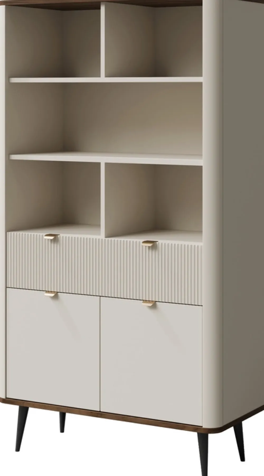 Ten nowoczesny regał do salonu to idealne rozwiązanie dla osób ceniących połączenie funkcjonalności z eleganckim designem. Otwarta forma półek pozwala na efektowną ekspozycję książek, dekoracji czy roślin, a dolna część mebla zapewnia praktyczne miejsce do przechowywania przedmiotów codziennego użytku. Regał doskonale odnajdzie się zarówno w nowoczesnych, jak i klasycznych aranżacjach.