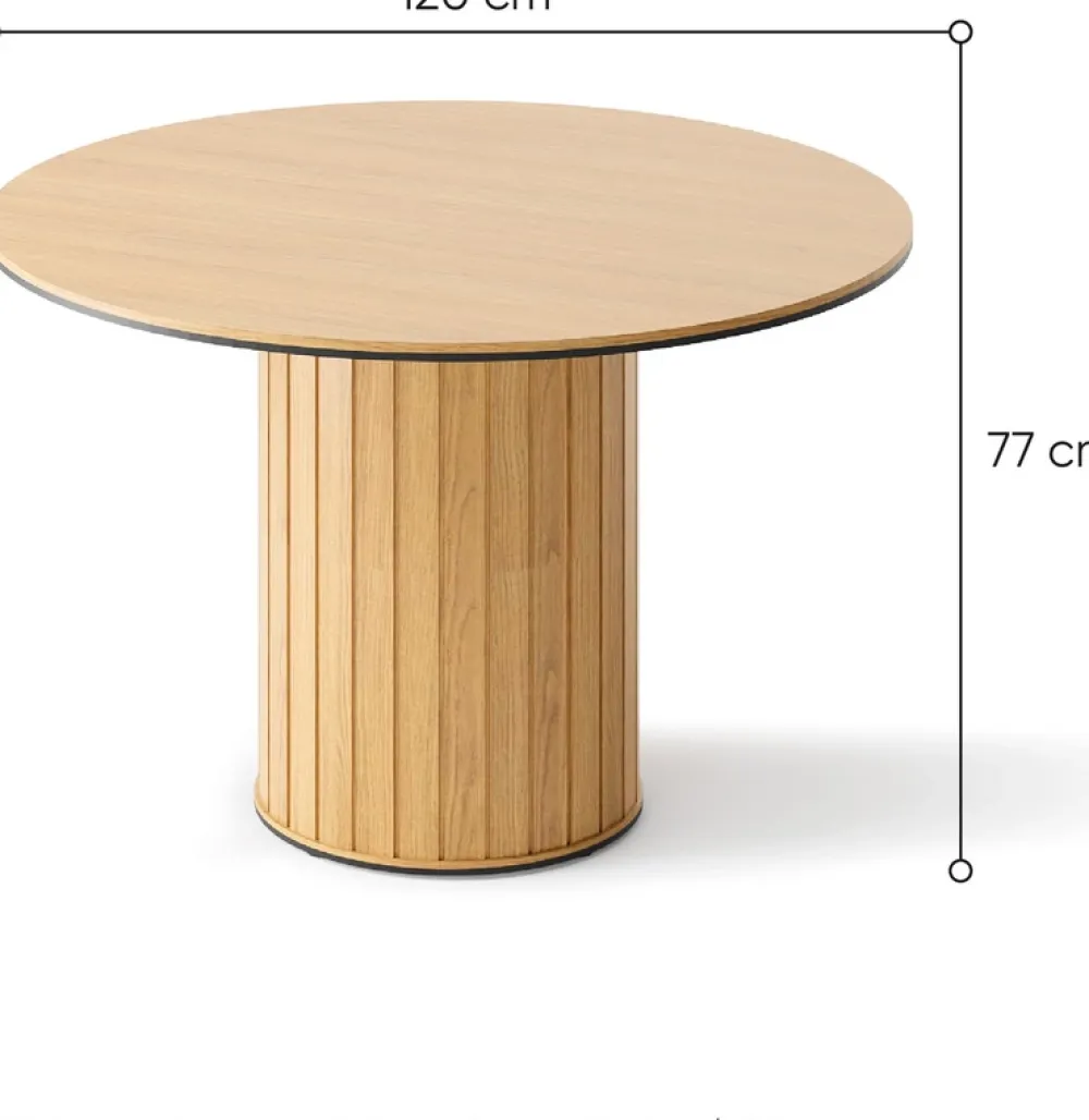 - Okrągły stół 120 cm do jadalni w stylu japandi łączy naturalny urok dębu Vincenza z czarnymi detalami. Minimalistyczny design, zaokrąglone krawędzie i podstawa z ozdobnymi lamelami tworzą przytulną, nowoczesną przestrzeń dla 4–6 osób. Obrzeża ABS.