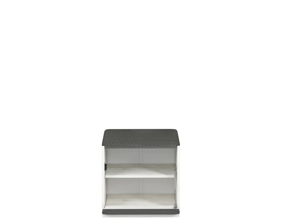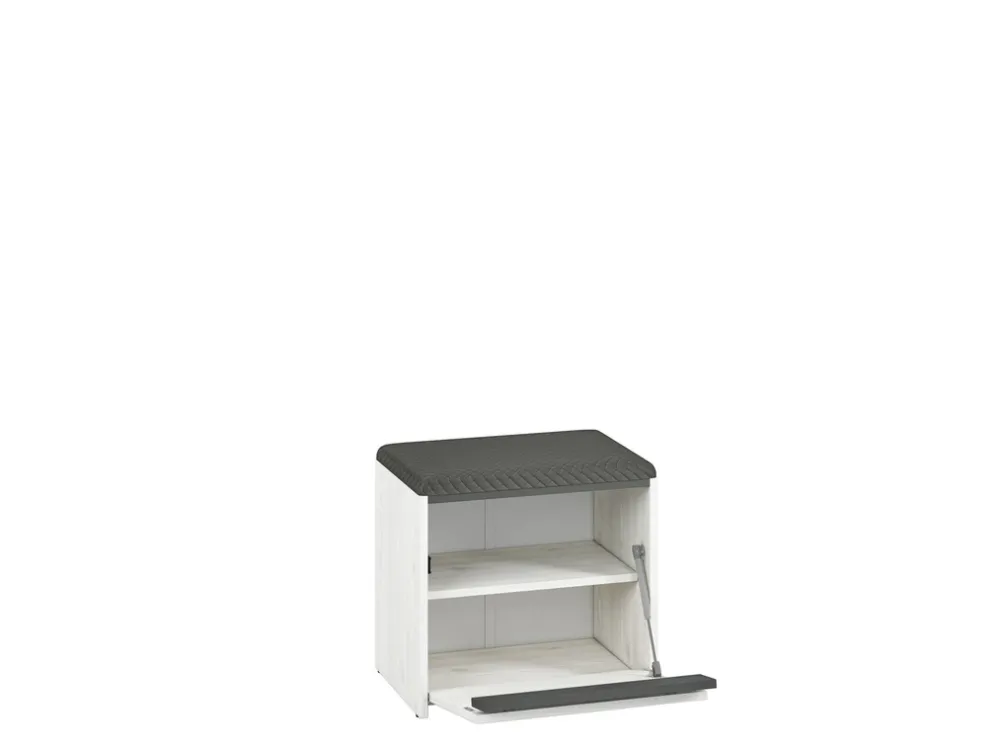 - Szafka na buty HYGA to świetna propozycja na wyposażenie przedpokoju. Posiada uchylne drzwi z siłownikiem gazowym, za którymi znajdują się dwa poziomy na umieszczenie butów. Szafka posiada miękkie, tapicerowane siedzisko wykonane z ekoskóry.