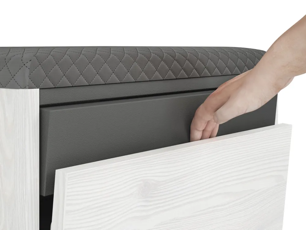 Głównym atutem naszej szafki na buty jest tapicerowane siedzisko wykonane z ekoskóry. To nie tylko eleganckie wykończenie, ale także praktyczny element, który zapewnia wygodę podczas zakładania i zdejmowania obuwia. Ekoskóra jest materiałem łatwym do utrzymania w czystości, odpornym na uszkodzenia i przyjaznym dla środowiska. Dzięki temu siedzisko pozostanie w doskonałym stanie przez długi czas.
