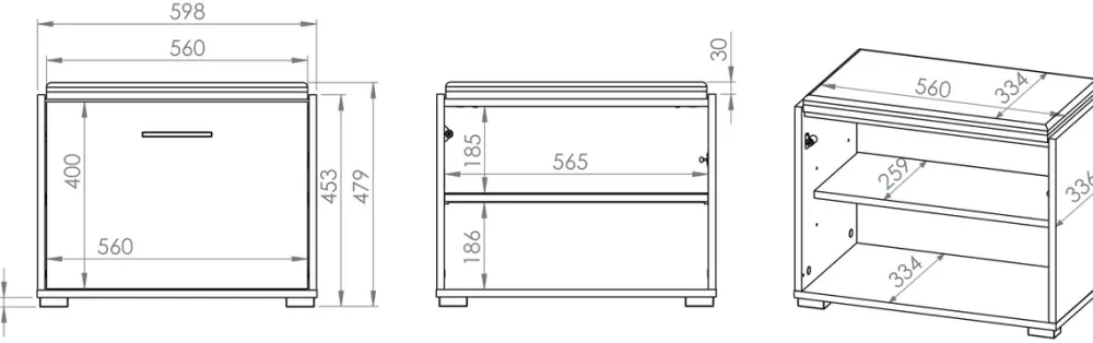Pod siedziskiem znajduje się uchylny front, który kryje praktyczną półkę na buty. Dzięki temu rozwiązaniu Twoje obuwie będzie zawsze uporządkowane i łatwo dostępne, a przedpokój zachowa schludny i zorganizowany wygląd. Uchylny mechanizm frontu umożliwia szybki dostęp do przechowywanych par butów, jednocześnie oszczędzając miejsce.