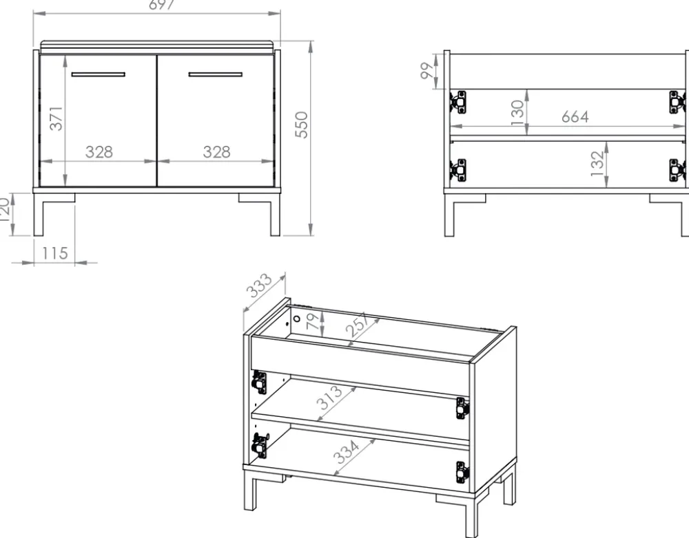 - Szafka posiada tapicerowane siedzisko, pod którym znajdziemy dodatkowy schowek na nasze rzeczy.