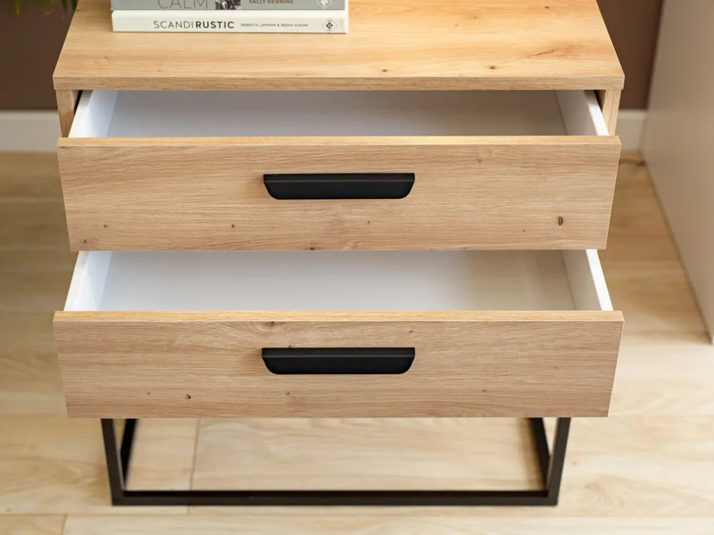 - Dwie pojemne szuflady – idealne miejsce na książki, ładowarki czy kosmetyki