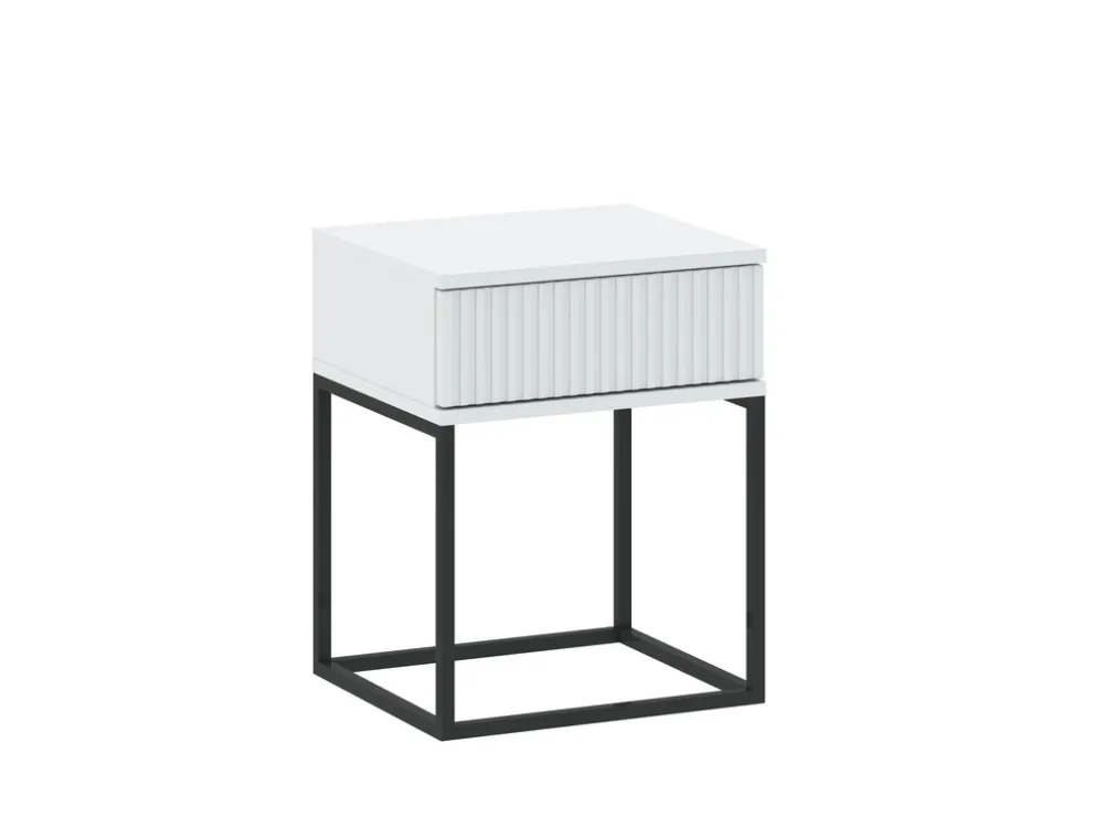 - Szafka nocna COTTA to biały mebel z jedną szufladą, frontem z MDF i czarnymi metalowymi nóżkami. Idealna do nowoczesnej sypialni – kompaktowa, trwała i praktyczna. Stylowa prostota na co dzień i na noc.