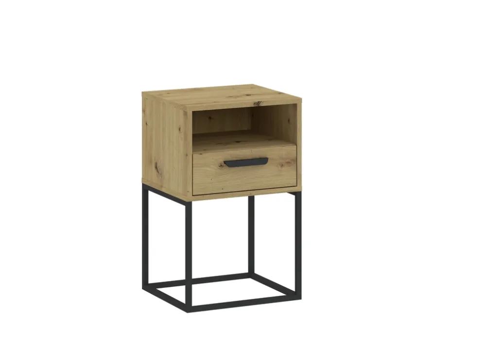 - Szafka nocna COTTA w kolorze dąb artisan z czarnymi metalowymi nogami, szufladą i półką to idealne połączenie stylu i funkcjonalności. Kompaktowa, praktyczna i pasująca do jasnych i loftowych wnętrz. Idealna do każdej nowoczesnej sypialni.